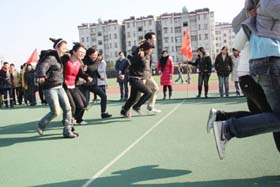 寒風簌簌,陽光絢爛。在2008年12月6日這個寒冷而富有激情的日子里,我司第一屆冬季運動會火熱開展。為了充分調動大家的激情,此次比賽項目的策劃可謂煞費苦心。除了籃球賽、4*100接力賽、100米短跑、乒乓球比賽、等傳統比賽項目外,新增了很多趣味比賽項目如:趕小豬、兩人三足跑、夾球跑……大家玩得不亦樂乎!為了充分調動大家積極性,我們?yōu)檫\動健兒們準備了豐富的獎品,有棉被、電蒸鍋、電熱水捂、手套、圍巾、領帶、保溫杯、指套裝、收音機、筆筒等等。我們還特設抽獎環(huán)節(jié),每項比賽的前三名都會獲得一張“金卡”,拿著金卡可以抽獎,中獎率為100%,未得金卡的選手們也將得到一份精美禮品。