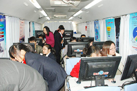 會后,信息化大篷車上,客服經(jīng)理正在與客戶“一對一”現(xiàn)場演示