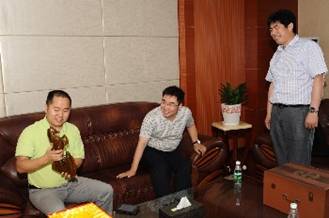 百度領(lǐng)導(dǎo)帶來的寓意深遠(yuǎn)的精美禮品在贈送儀式開始之前,鞏總、金總認(rèn)真查看禮品