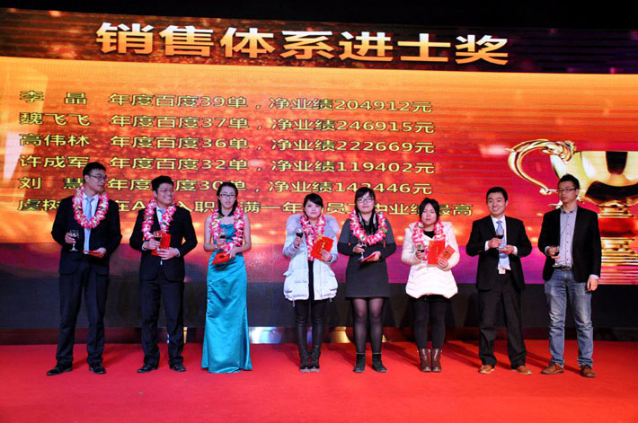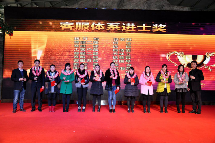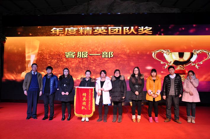 公司領(lǐng)導(dǎo)為年度服務(wù)管理精英頒獎(jiǎng)并合影留念